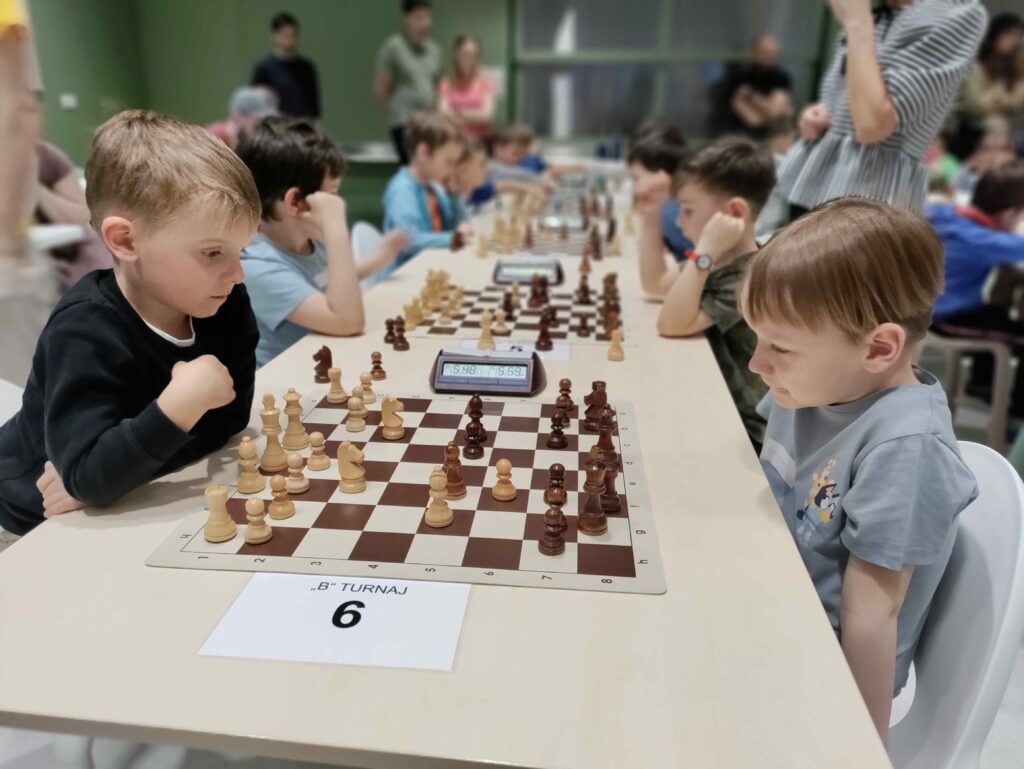 V „B“ ku vyhral s plným počtom bodov Adam Lörinc, veľmi príjemne prekvapil druhý Juraj Koneracký, ktorý stratil na víťaza len pol bodu. Na treťom mieste skončil so štyrmi bodmi Nikolas Lupták pred ďalším štvorbodovým Alexandrom Schwarzmannom, ktorý však získal pohár pre najmladšieho šachistu. V „B“ ku bola medzi dievčatami najlepšia Karolína Šefcová, výkony dievčat však v oboch turnajoch za umením chlapcov dosť zaostávali.