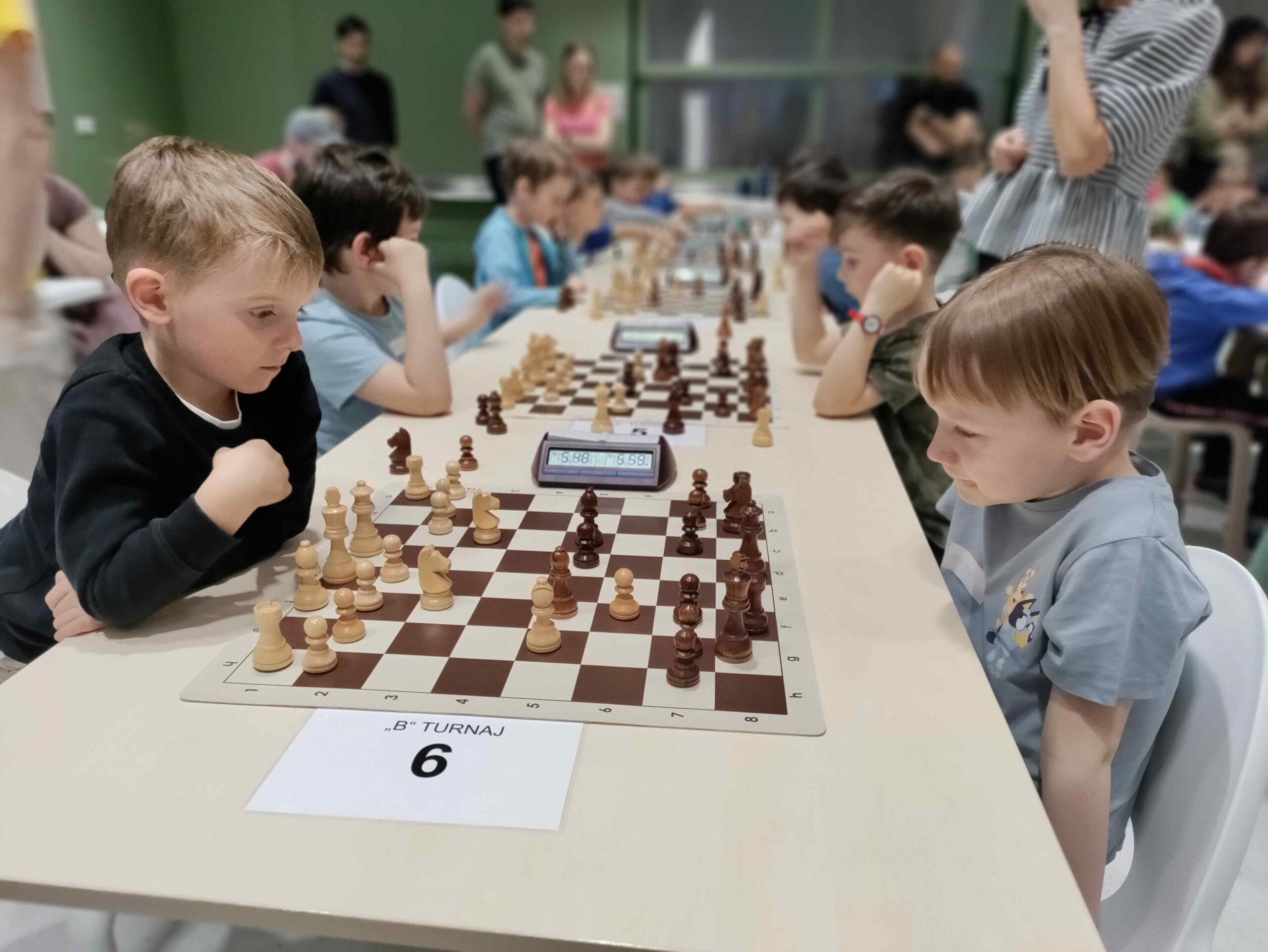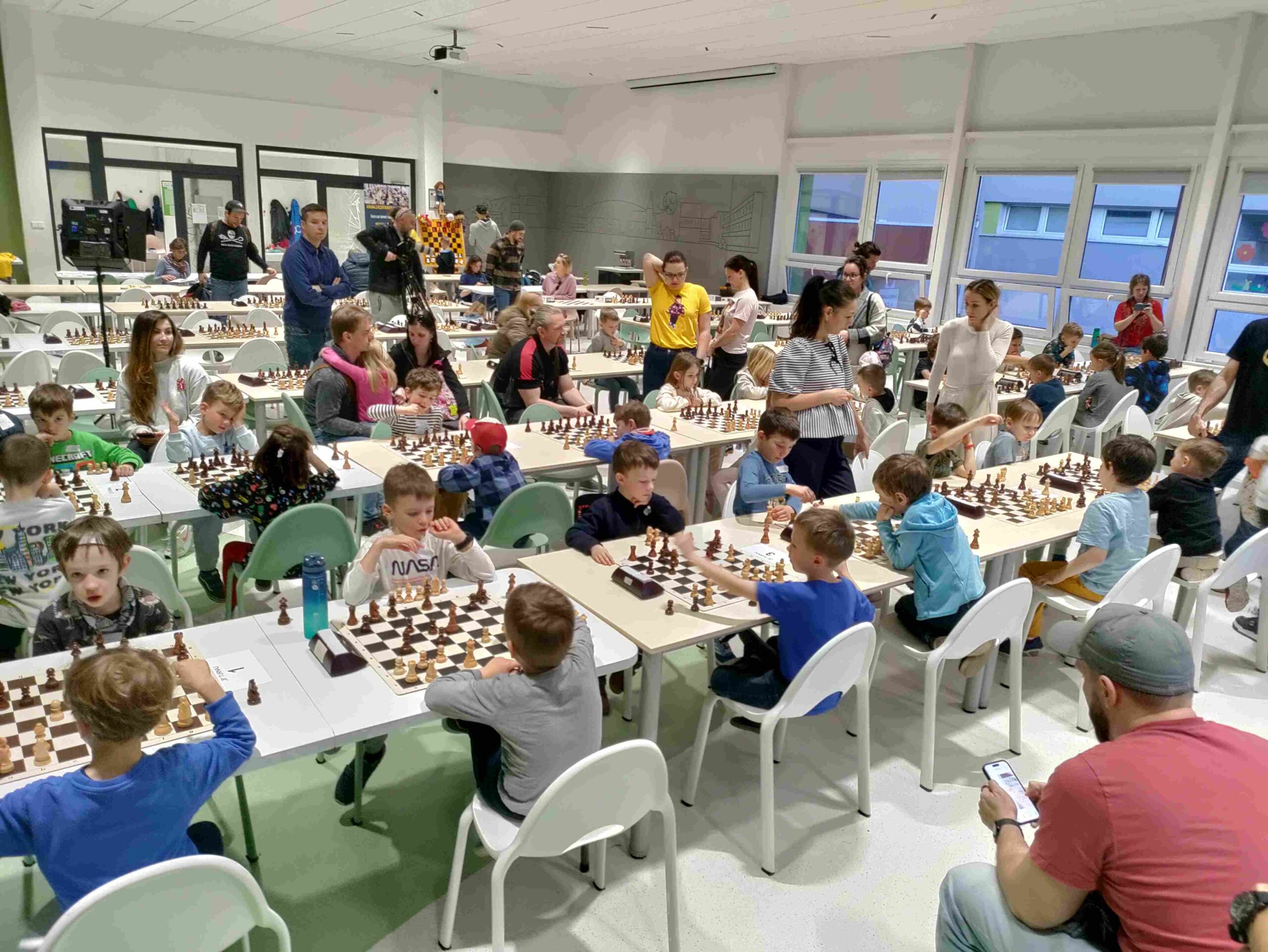 44 malých superhrdinov si to rozdalo za šachovnicou v turnaji „A“ pre mierne pokročilých a v „B“-ku pre začiatočníkov. Všetci odohrali 5 partií, každú za približne 15 minút. Bol by to celkom bežný turnaj, ale turnaj pre najmenších je vždy výnimočný – pre mnohých premiéra, počtom ťahov proti pravidiel, emóciami detí a… tentokrát aj preto, lebo sa na nás do ZŠ Tbiliská prišli pozrieť z televízie TA3. Vraj už toho futbalu, hokeju a tenisu je už dosť, zatúžili po nejakej zmene a akousi náhodou našli nás.